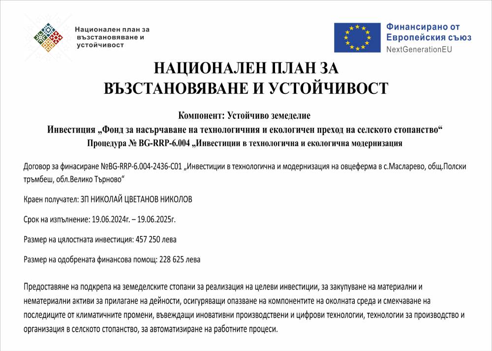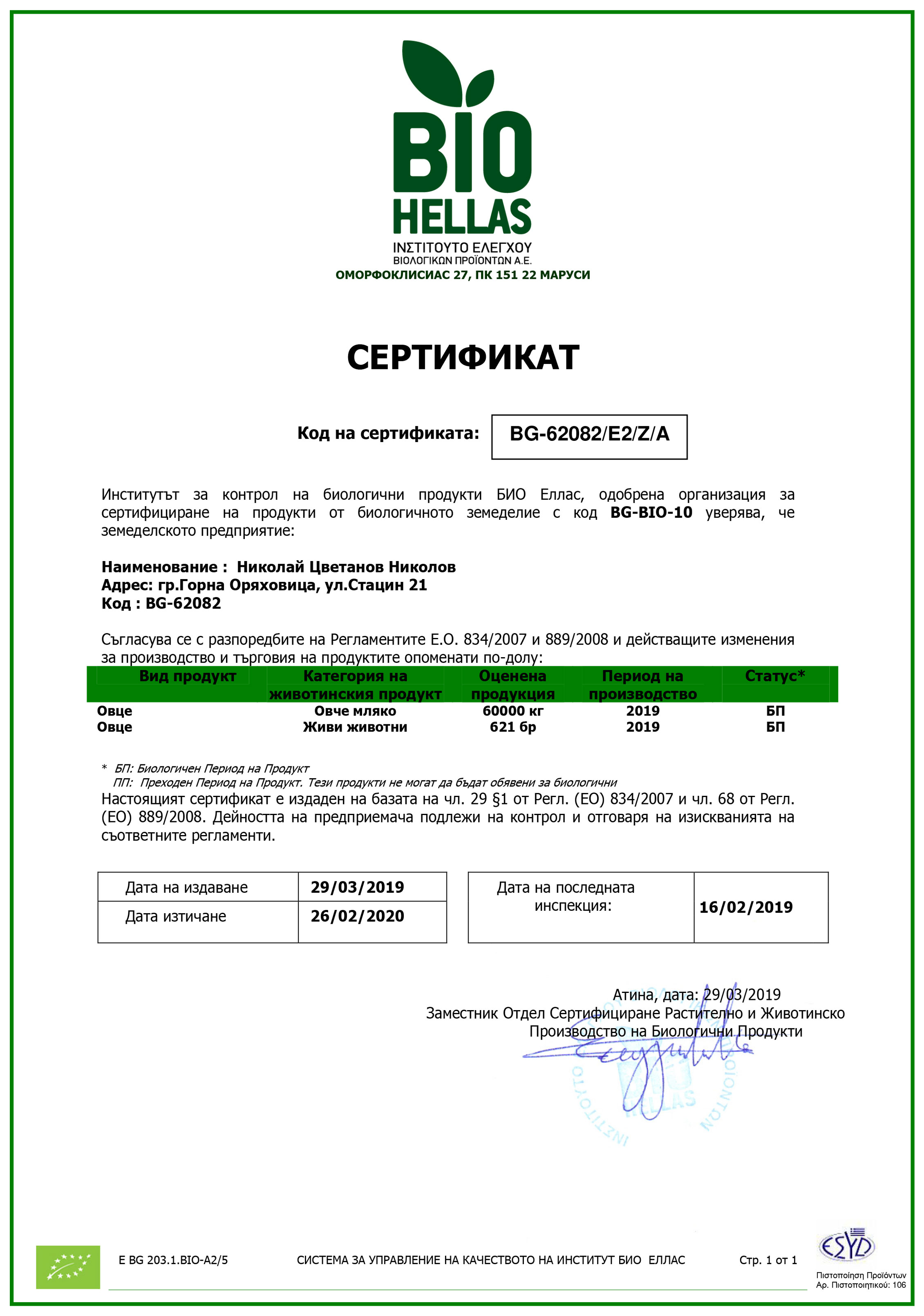 Сертифицирани сме за производство на биологични продукти. Такива са не само овчето мляко, а и фуражът за животните. В процес на разработка е и собствена мандра за производство